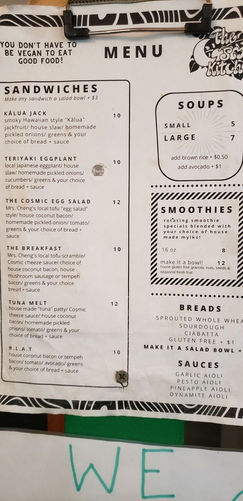 The Cosmic Kitchen is open Monday, Friday, Saturday, Sunday.